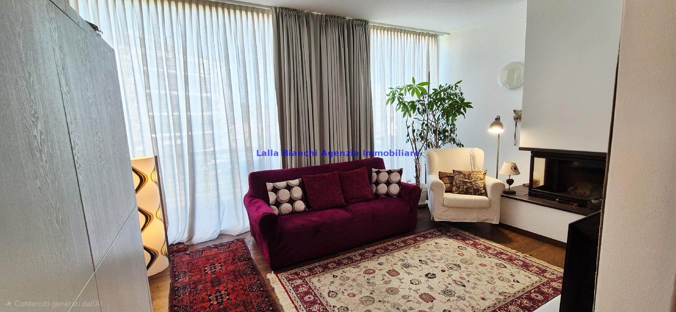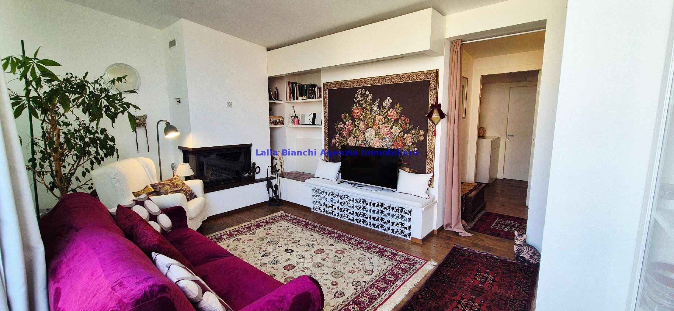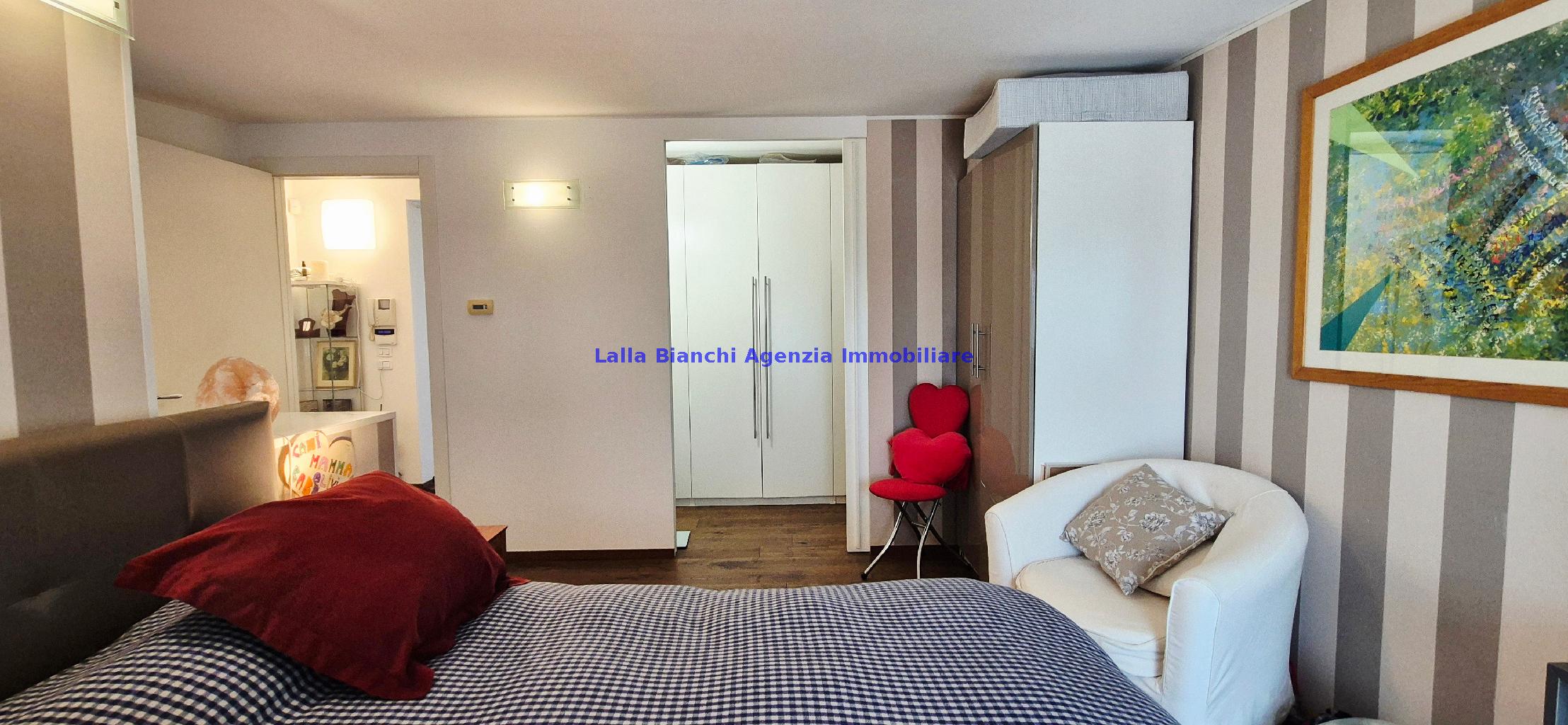 L'appartamento ubicato al primo e secondo piano (piano 1-2) è così composto: PIANO PRIMO Ingresso, soggiorno con grande balcone loggiato, cucina, disimpegno, un bagno e un'ampia camera con terrazzo; PIANO SECONDO tramite una comoda e moderna scala interna si accede al secondo livello dove troviamo un disimpegno, una camera matrimoniale con balcone loggiato, una cabina armadio, un ulteriore bagno, una magnifica seconda zona giorno molto luminosa con caratteristico camino e grandissima vetrata, completata da un grande terrazzo abitabile panoramico.