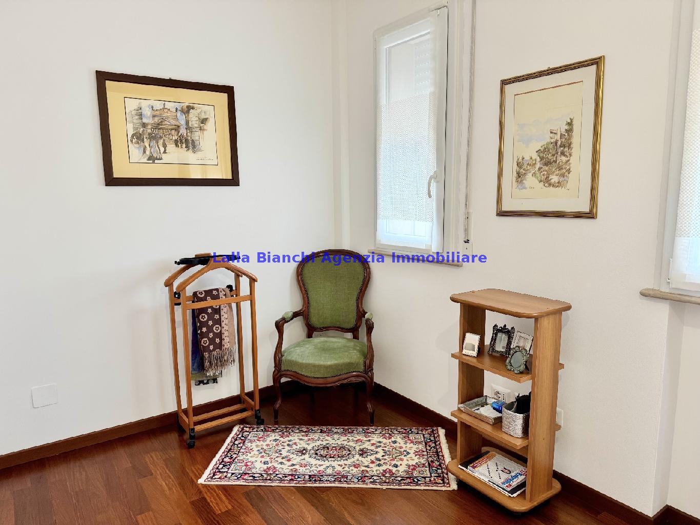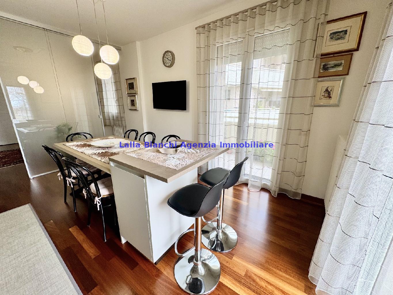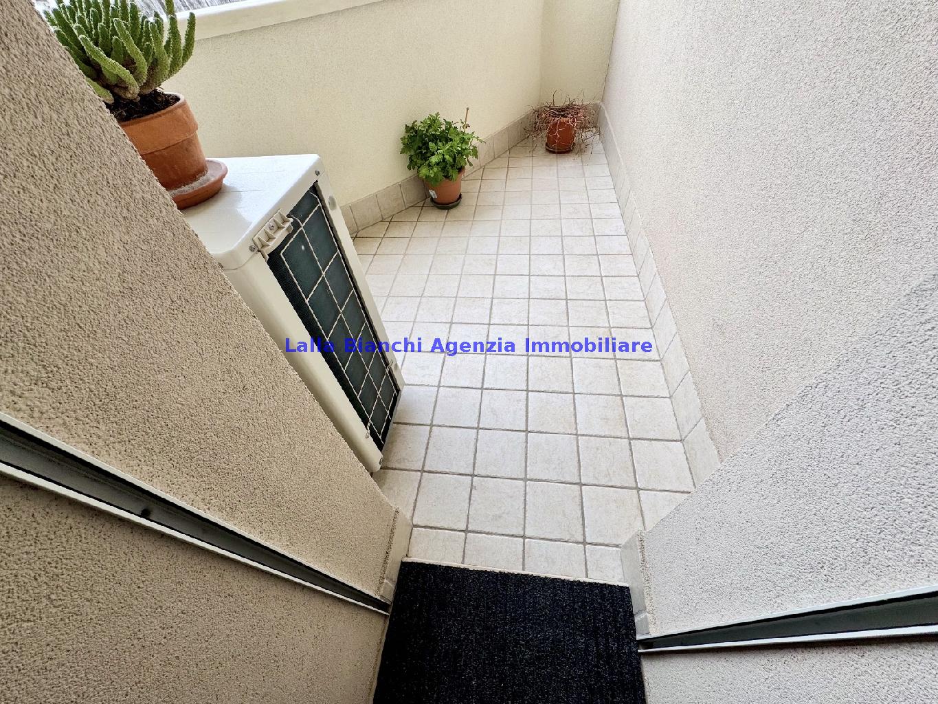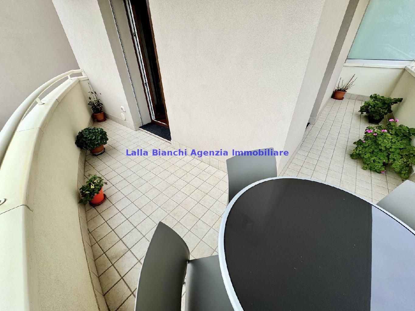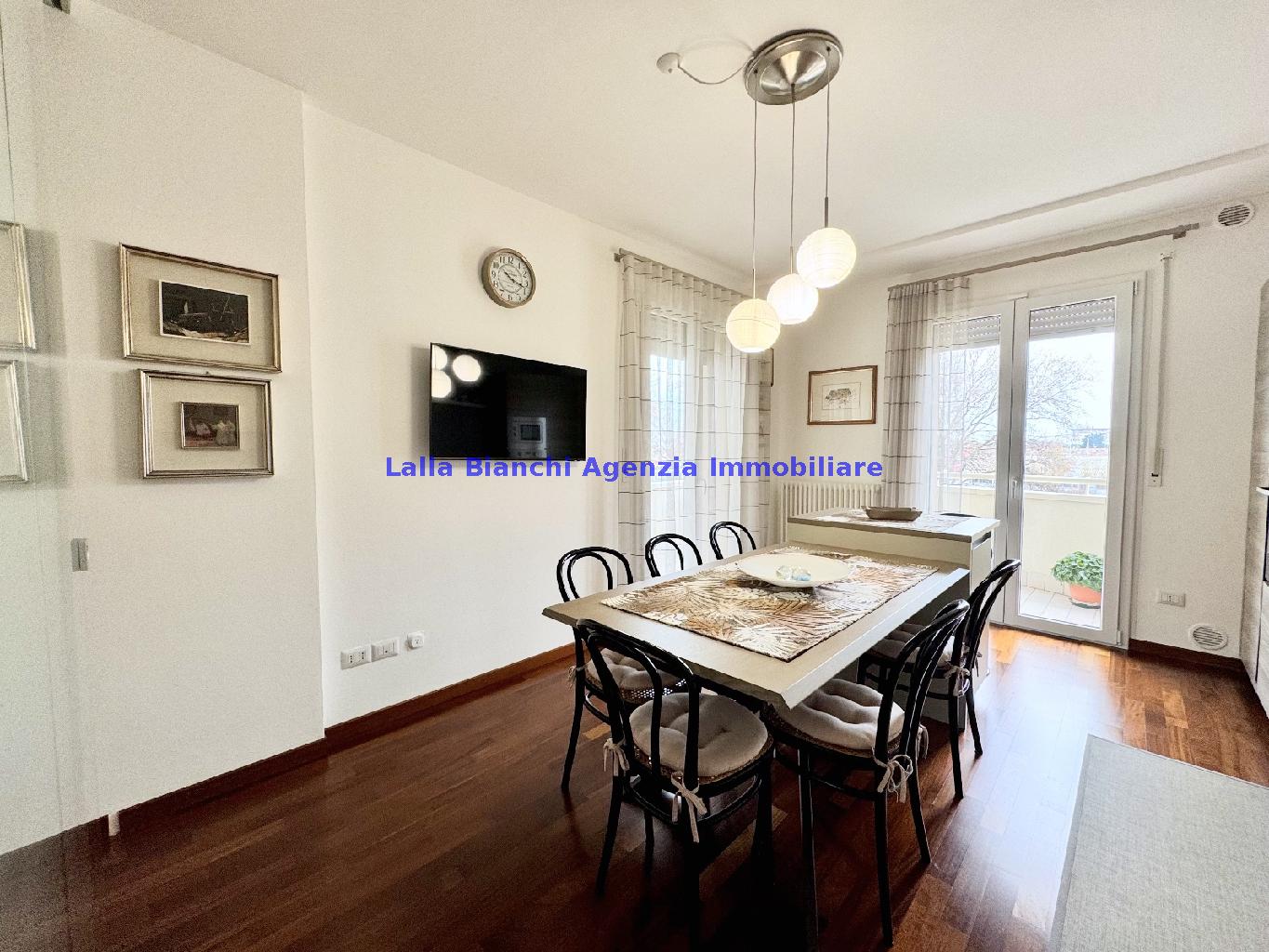 PESARO (PU) / BAIA FLAMINIA: COD. RIF. V. 9199 - L'AGENZIA IMMOBILIARE LALLA BIANCHI propone in VENDITA un elegante Appartamento semi nuovo con due terrazzi al Piano Secondo e un Garage esclusivo al Piano Interrato, all'interno di un recente e signorile piccolo condominio dotato di ascensore. L'abitazione di tipo civile situata al secondo piano di una palazzina residenziale di poche unità, ha una Superficie catastale Totale di 99 m² così suddivisa: - Zona giorno: ingresso diretto su un luminoso soggiorno separato dall'ampia cucina pranzo "abitabile" tramite una raffinata parete a due ante scorrevoli in vetro, da cui si accede ad un ampio terrazzo ideale per pranzi all'aperto. - Zona notte: un disimpegno che accompagna ad un bagno spazioso e finestrato con accesso esclusivo al secondo terrazzo, a due ampie camere da letto e ad una terza stanza attualmente adibita a lavanderia (e comoda dispensa). Completa la proprietà un comodo Garage di Superficie catastale Totale di 22 m² al Piano Interrato, raggiungibile direttamente con l'ascensore a norma disabili (assenza di barriere architettoniche) locato in una zona condominiale ben curata, inclusi ingresso, vano scala e parti comuni. L'appartamento, ultimato e rifinito nel 2019, si presenta in condizioni impeccabili, perfettamente mantenuto e pronto per essere abitato senza necessità di lavori, le finiture interne sono di alto livello, con pavimenti in parquet nella zona giorno e nelle camere, la residenza è dotata di video-citofono, di aria condizionata con tre split interni, impianto d'allarme/antifurto e portone blindato per la massima sicurezza. Le utenze sono autonome (riscaldamento, gas, luce e acqua) e le spese condominiali sono contenute, pari a circa 60 euro al mese. L'immobile rappresenta un'ottima opportunità sia come abitazione principale che come seconda casa o casa vacanze, grazie alla sua posizione strategica: a soli 5 minuti a piedi dalla spiaggia e dal mare di Baia Flaminia e a pochi passi dalla zona Mare e dal Centro Storico della città Pesaro, luoghi facilmente raggiungibili anche in bicicletta tramite la pista ciclabile che passa proprio di fronte alla casa proposta in Vendita.