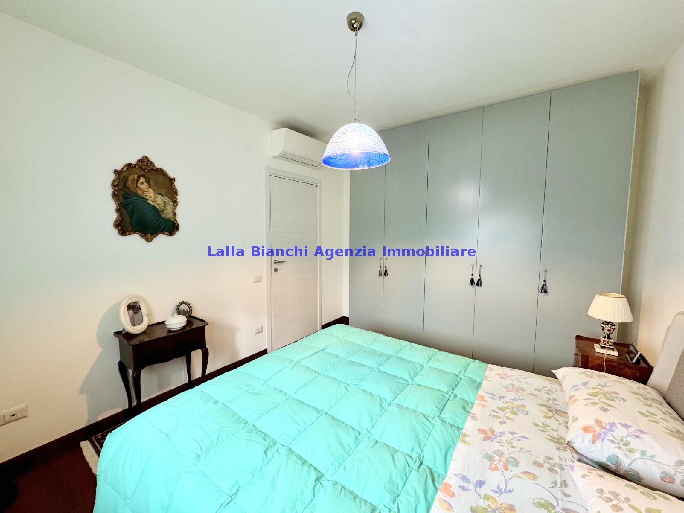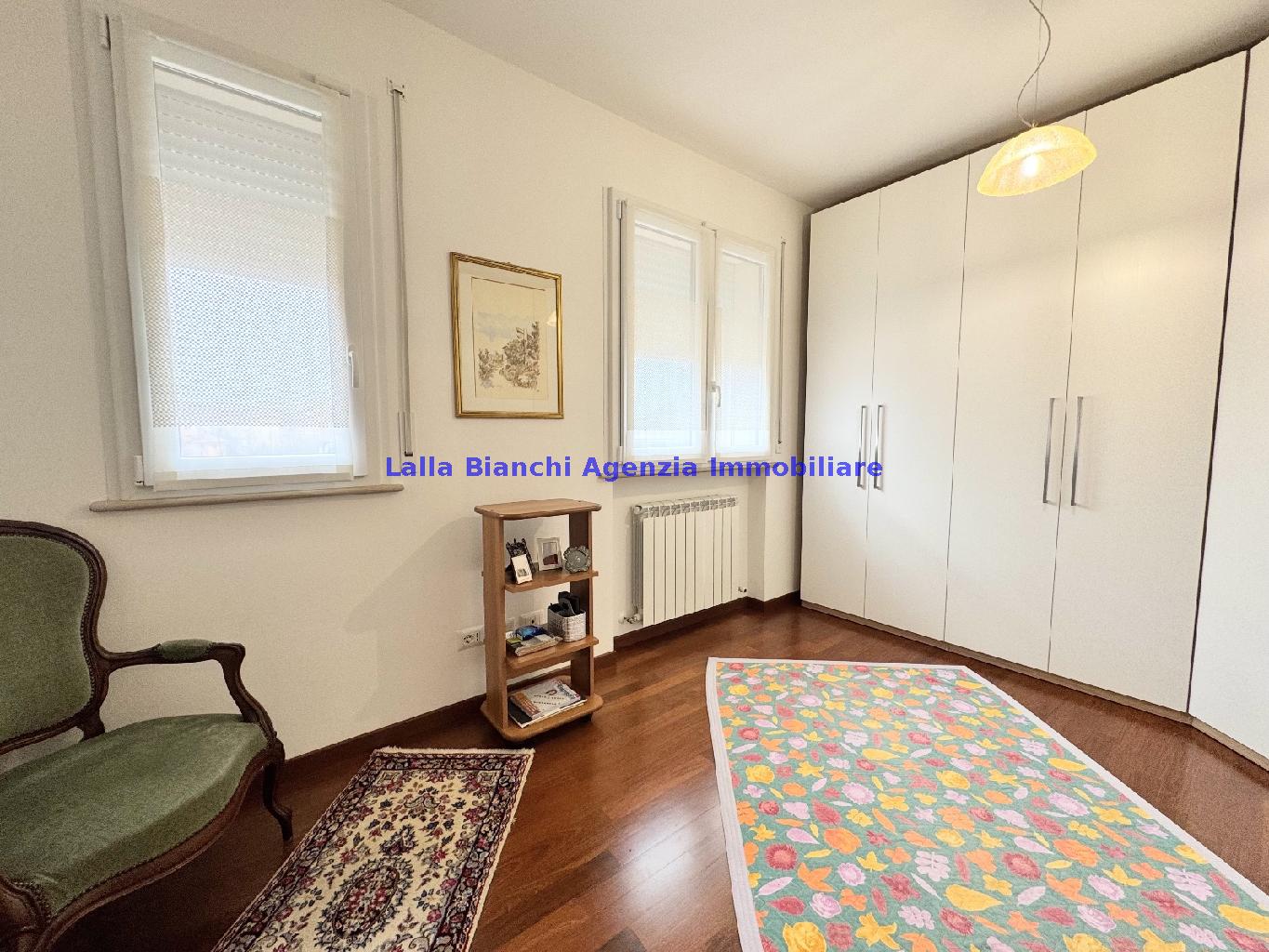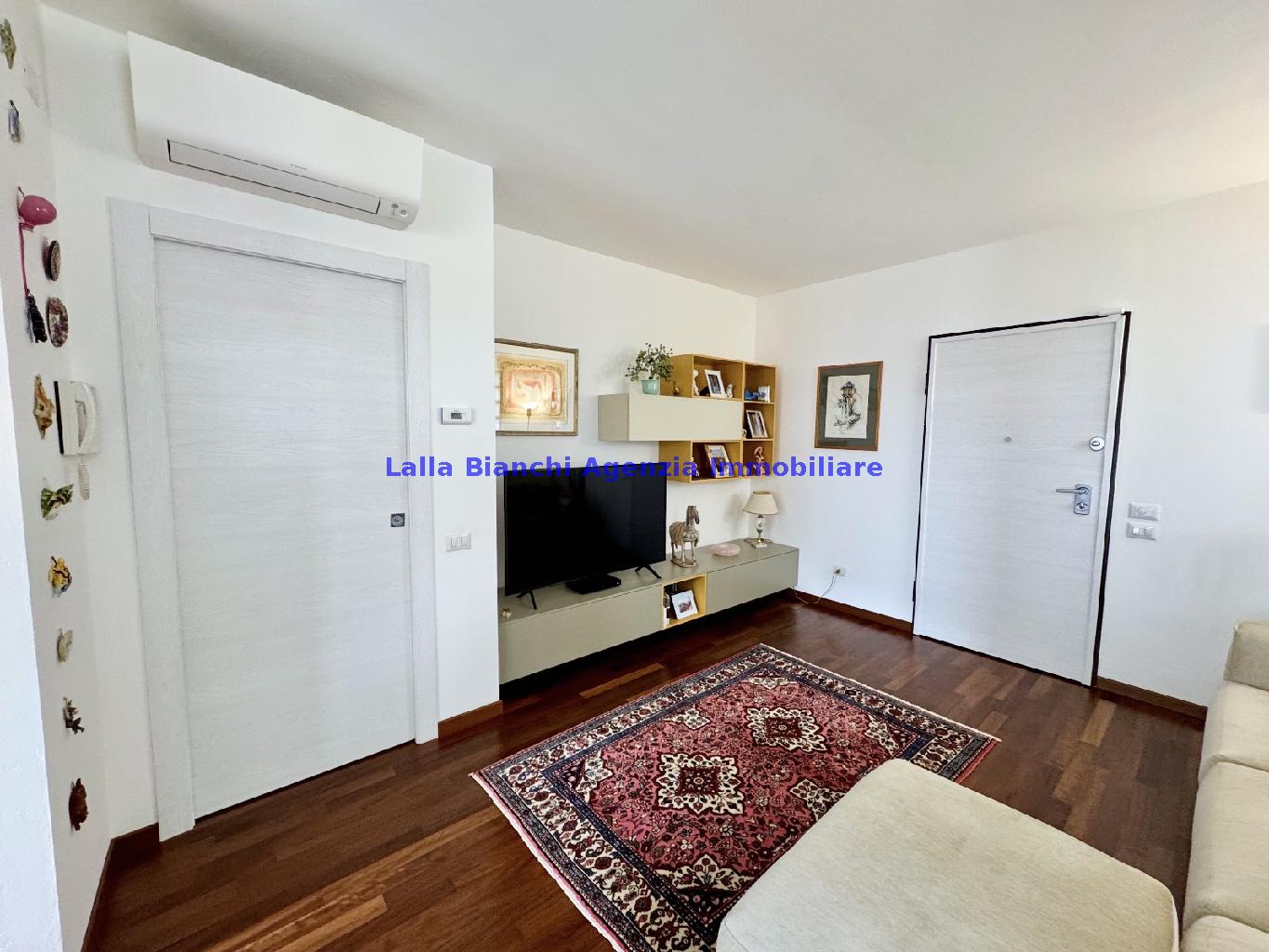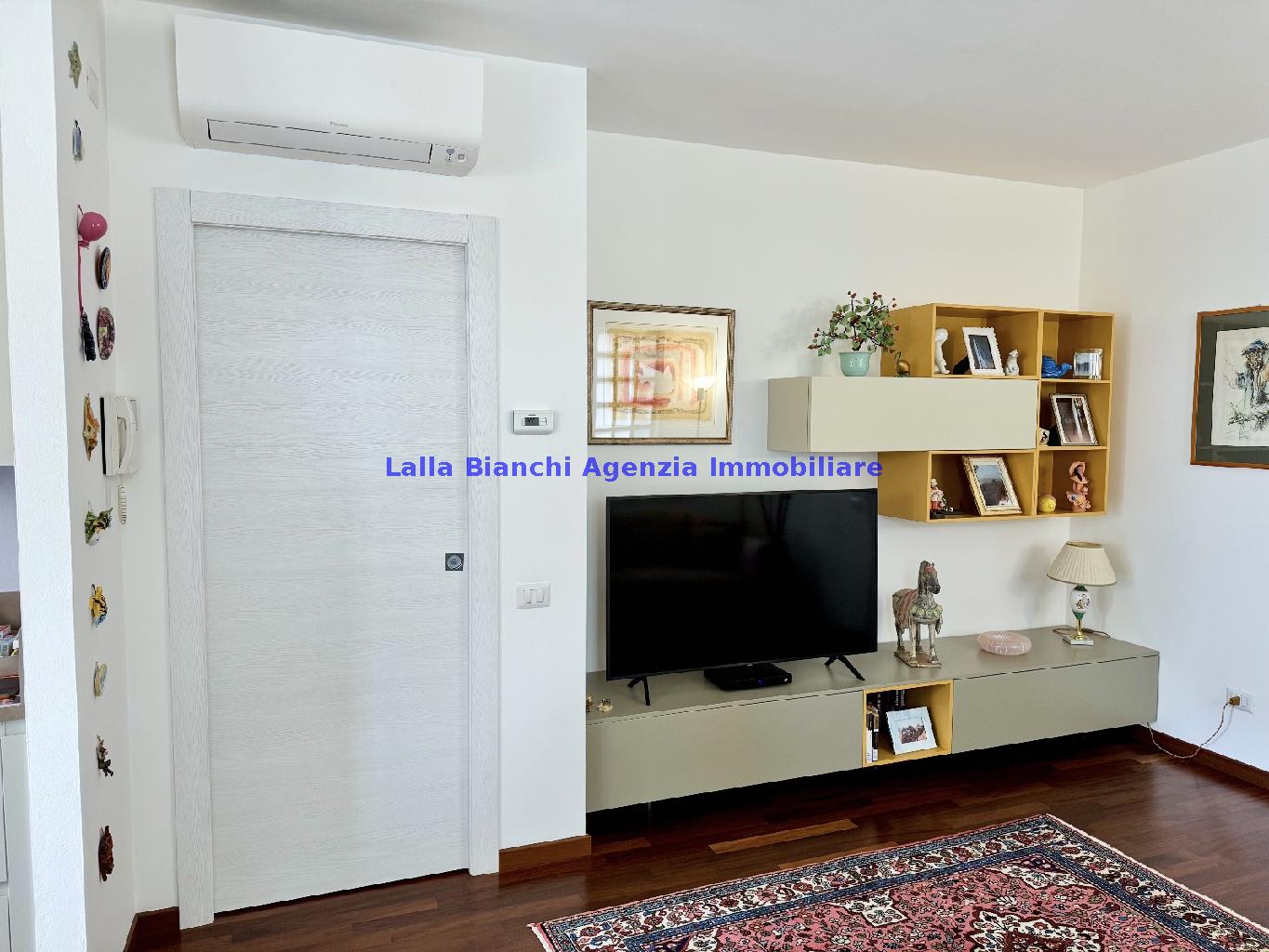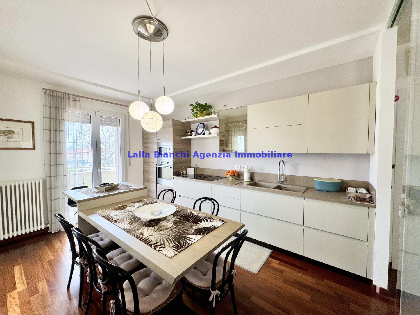 PESARO (PU) / BAIA FLAMINIA: COD. RIF. V. 9199 - L'AGENZIA IMMOBILIARE LALLA BIANCHI propone in VENDITA un elegante Appartamento semi nuovo con due terrazzi al Piano Secondo e un Garage esclusivo al Piano Interrato, all'interno di un recente e signorile piccolo condominio dotato di ascensore. L'abitazione di tipo civile situata al secondo piano di una palazzina residenziale di poche unità, ha una Superficie catastale Totale di 99 m² così suddivisa: - Zona giorno: ingresso diretto su un luminoso soggiorno separato dall'ampia cucina pranzo "abitabile" tramite una raffinata parete a due ante scorrevoli in vetro, da cui si accede ad un ampio terrazzo ideale per pranzi all'aperto. - Zona notte: un disimpegno che accompagna ad un bagno spazioso e finestrato con accesso esclusivo al secondo terrazzo, a due ampie camere da letto e ad una terza stanza attualmente adibita a lavanderia (e comoda dispensa). Completa la proprietà un comodo Garage di Superficie catastale Totale di 22 m² al Piano Interrato, raggiungibile direttamente con l'ascensore a norma disabili (assenza di barriere architettoniche) locato in una zona condominiale ben curata, inclusi ingresso, vano scala e parti comuni. L'appartamento, ultimato e rifinito nel 2019, si presenta in condizioni impeccabili, perfettamente mantenuto e pronto per essere abitato senza necessità di lavori, le finiture interne sono di alto livello, con pavimenti in parquet nella zona giorno e nelle camere, la residenza è dotata di video-citofono, di aria condizionata con tre split interni, impianto d'allarme/antifurto e portone blindato per la massima sicurezza. Le utenze sono autonome (riscaldamento, gas, luce e acqua) e le spese condominiali sono contenute, pari a circa 60 euro al mese. L'immobile rappresenta un'ottima opportunità sia come abitazione principale che come seconda casa o casa vacanze, grazie alla sua posizione strategica: a soli 5 minuti a piedi dalla spiaggia e dal mare di Baia Flaminia e a pochi passi dalla zona Mare e dal Centro Storico della città Pesaro, luoghi facilmente raggiungibili anche in bicicletta tramite la pista ciclabile che passa proprio di fronte alla casa proposta in Vendita.