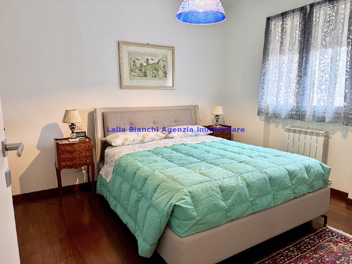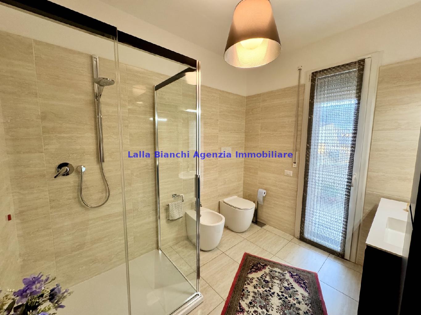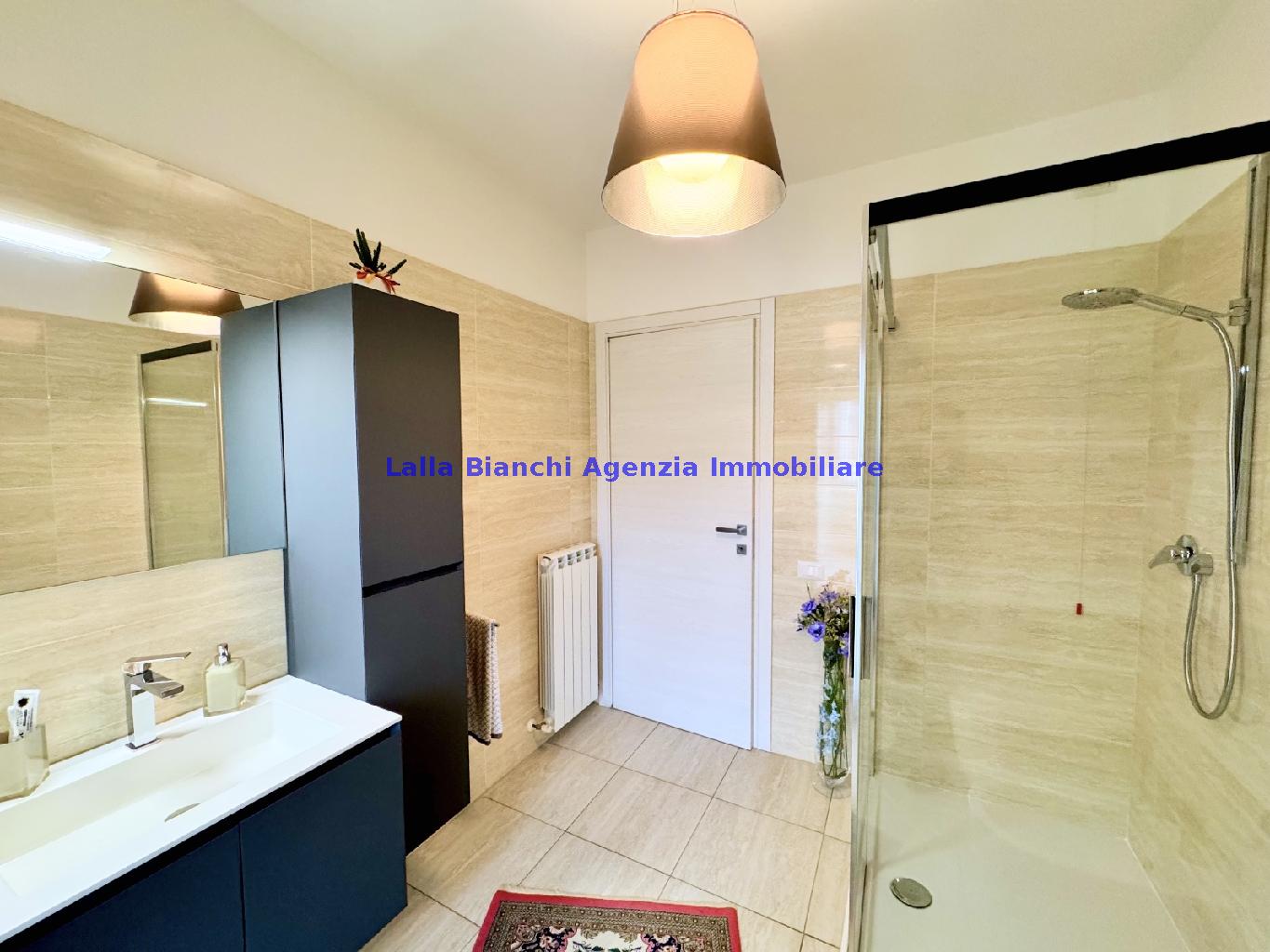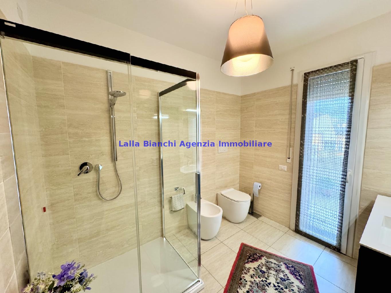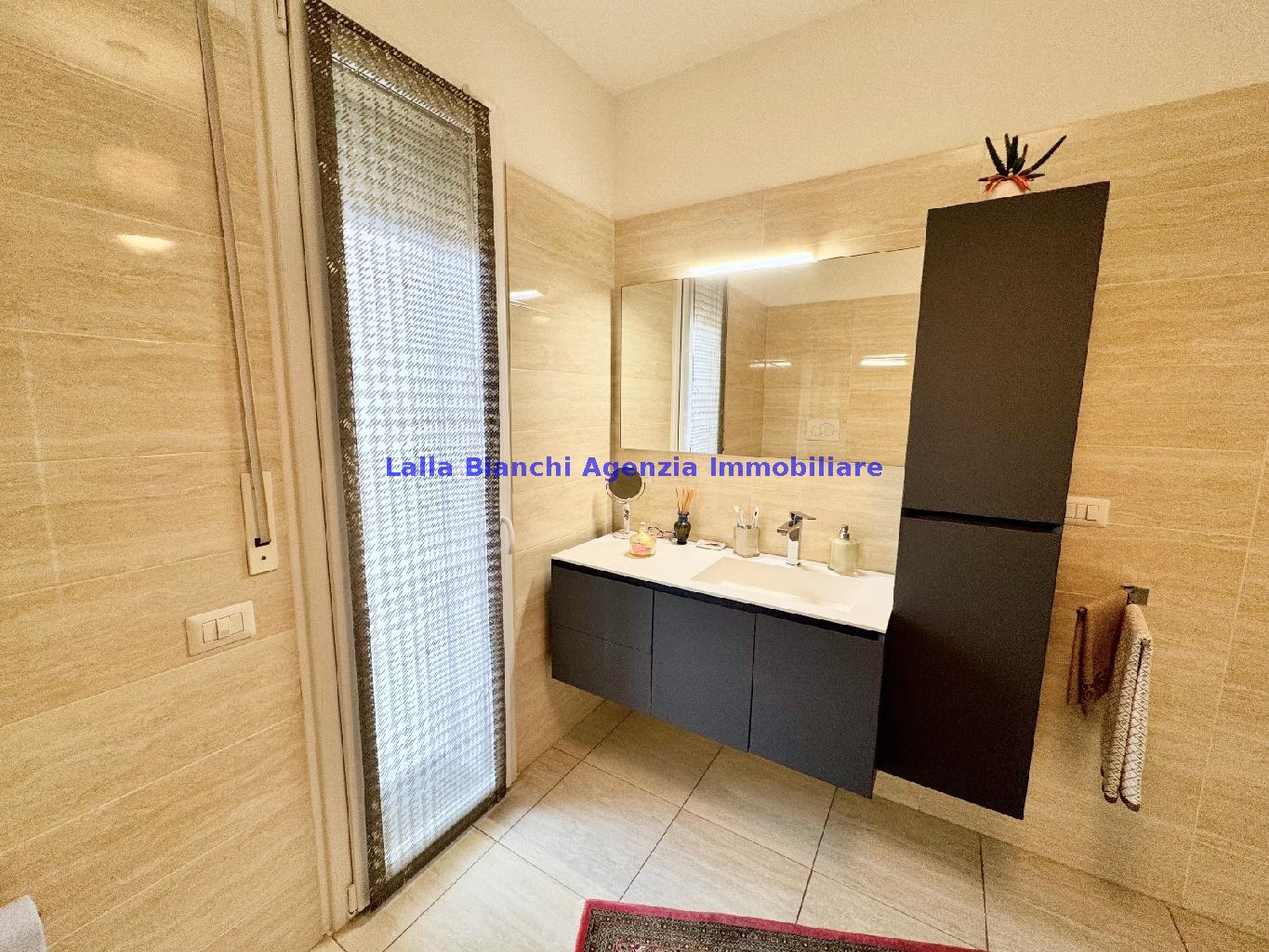 PESARO (PU) / BAIA FLAMINIA: COD. RIF. V. 9199 - L'AGENZIA IMMOBILIARE LALLA BIANCHI propone in VENDITA un elegante Appartamento semi nuovo con due terrazzi al Piano Secondo e un Garage esclusivo al Piano Interrato, all'interno di un recente e signorile piccolo condominio dotato di ascensore. L'abitazione di tipo civile situata al secondo piano di una palazzina residenziale di poche unità, ha una Superficie catastale Totale di 99 m² così suddivisa: - Zona giorno: ingresso diretto su un luminoso soggiorno separato dall'ampia cucina pranzo "abitabile" tramite una raffinata parete a due ante scorrevoli in vetro, da cui si accede ad un ampio terrazzo ideale per pranzi all'aperto. - Zona notte: un disimpegno che accompagna ad un bagno spazioso e finestrato con accesso esclusivo al secondo terrazzo, a due ampie camere da letto e ad una terza stanza attualmente adibita a lavanderia (e comoda dispensa). Completa la proprietà un comodo Garage di Superficie catastale Totale di 22 m² al Piano Interrato, raggiungibile direttamente con l'ascensore a norma disabili (assenza di barriere architettoniche) locato in una zona condominiale ben curata, inclusi ingresso, vano scala e parti comuni. L'appartamento, ultimato e rifinito nel 2019, si presenta in condizioni impeccabili, perfettamente mantenuto e pronto per essere abitato senza necessità di lavori, le finiture interne sono di alto livello, con pavimenti in parquet nella zona giorno e nelle camere, la residenza è dotata di video-citofono, di aria condizionata con tre split interni, impianto d'allarme/antifurto e portone blindato per la massima sicurezza. Le utenze sono autonome (riscaldamento, gas, luce e acqua) e le spese condominiali sono contenute, pari a circa 60 euro al mese. L'immobile rappresenta un'ottima opportunità sia come abitazione principale che come seconda casa o casa vacanze, grazie alla sua posizione strategica: a soli 5 minuti a piedi dalla spiaggia e dal mare di Baia Flaminia e a pochi passi dalla zona Mare e dal Centro Storico della città Pesaro, luoghi facilmente raggiungibili anche in bicicletta tramite la pista ciclabile che passa proprio di fronte alla casa proposta in Vendita.