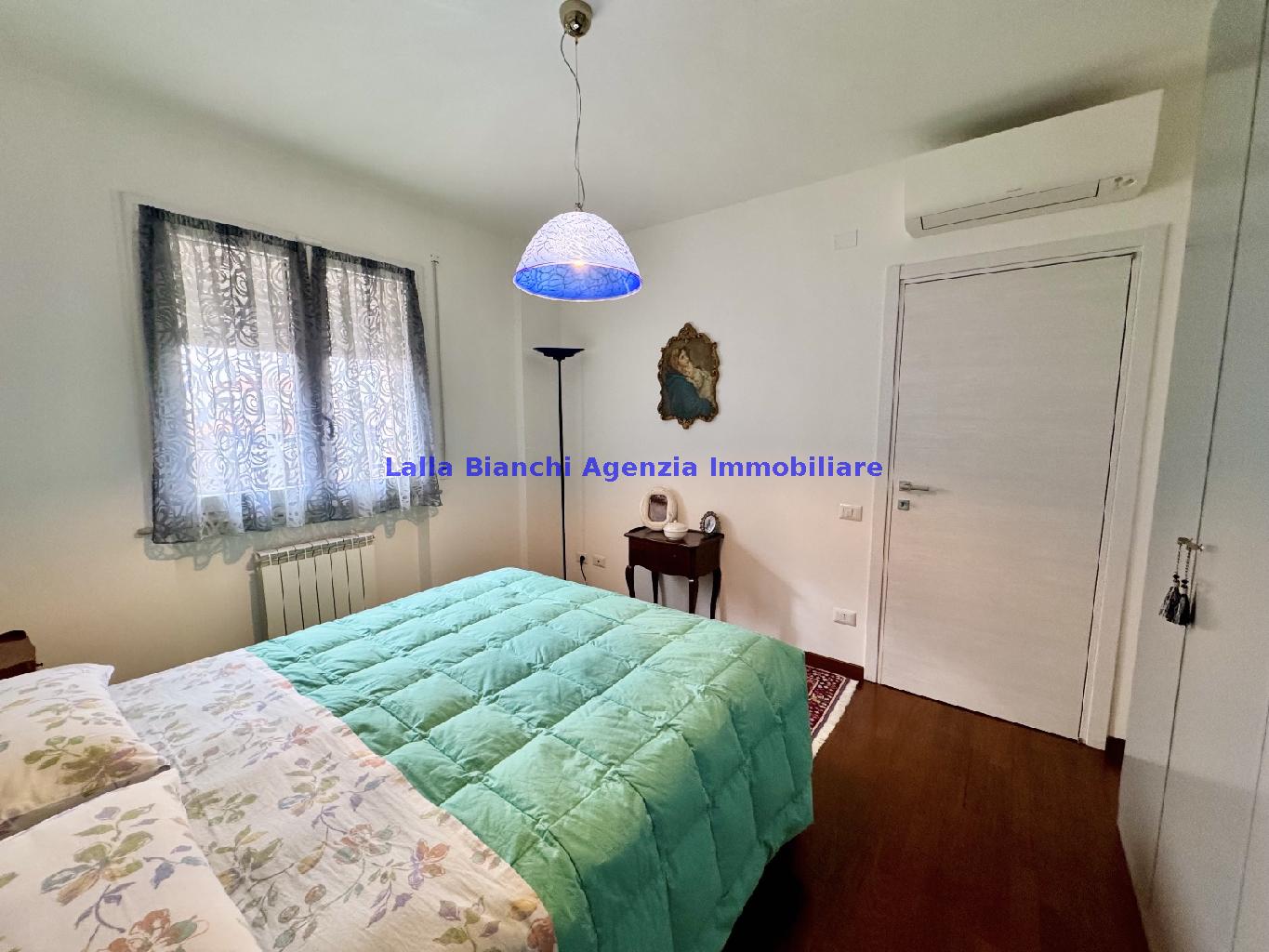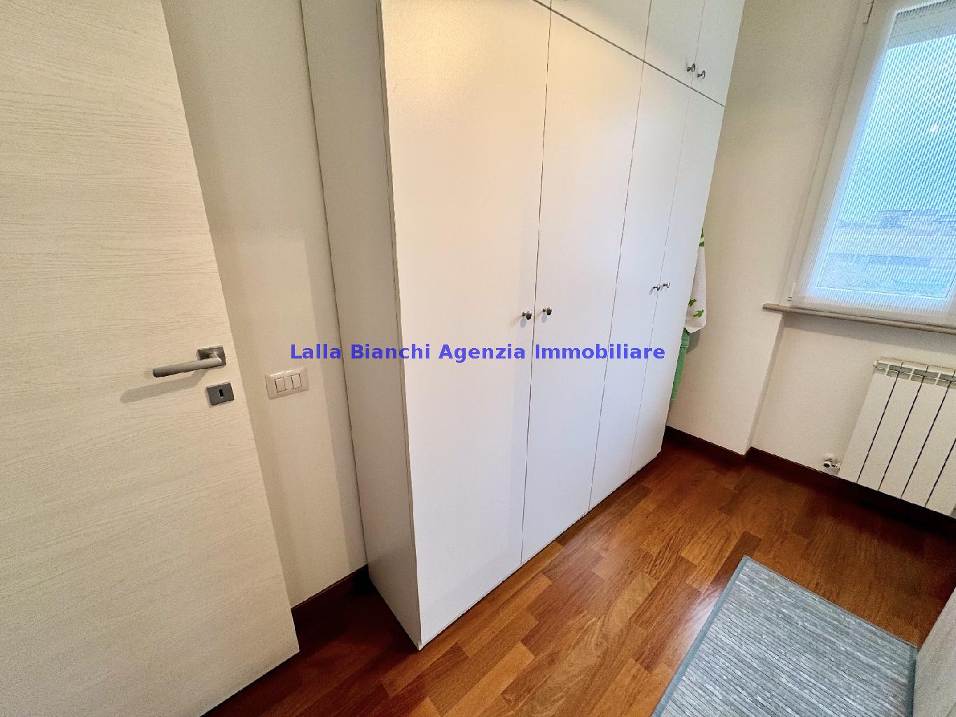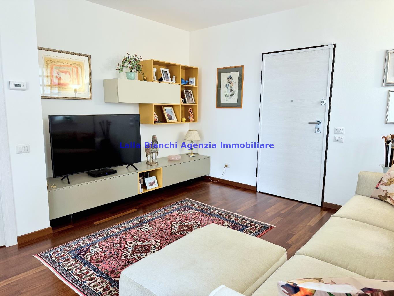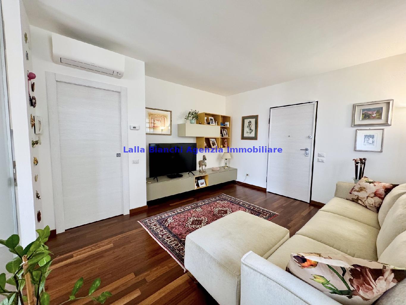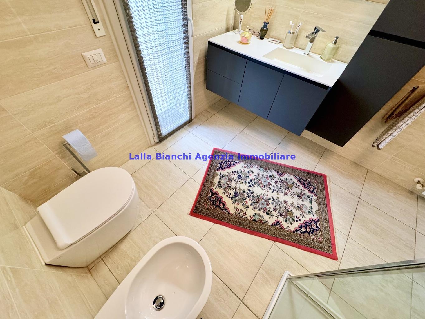 PESARO (PU) / BAIA FLAMINIA: COD. RIF. V. 9199 - L'AGENZIA IMMOBILIARE LALLA BIANCHI propone in VENDITA un elegante Appartamento semi nuovo con due terrazzi al Piano Secondo e un Garage esclusivo al Piano Interrato, all'interno di un recente e signorile piccolo condominio dotato di ascensore. L'abitazione di tipo civile situata al secondo piano di una palazzina residenziale di poche unità, ha una Superficie catastale Totale di 99 m² così suddivisa: - Zona giorno: ingresso diretto su un luminoso soggiorno separato dall'ampia cucina pranzo "abitabile" tramite una raffinata parete a due ante scorrevoli in vetro, da cui si accede ad un ampio terrazzo ideale per pranzi all'aperto. - Zona notte: un disimpegno che accompagna ad un bagno spazioso e finestrato con accesso esclusivo al secondo terrazzo, a due ampie camere da letto e ad una terza stanza attualmente adibita a lavanderia (e comoda dispensa). Completa la proprietà un comodo Garage di Superficie catastale Totale di 22 m² al Piano Interrato, raggiungibile direttamente con l'ascensore a norma disabili (assenza di barriere architettoniche) locato in una zona condominiale ben curata, inclusi ingresso, vano scala e parti comuni. L'appartamento, ultimato e rifinito nel 2019, si presenta in condizioni impeccabili, perfettamente mantenuto e pronto per essere abitato senza necessità di lavori, le finiture interne sono di alto livello, con pavimenti in parquet nella zona giorno e nelle camere, la residenza è dotata di video-citofono, di aria condizionata con tre split interni, impianto d'allarme/antifurto e portone blindato per la massima sicurezza. Le utenze sono autonome (riscaldamento, gas, luce e acqua) e le spese condominiali sono contenute, pari a circa 60 euro al mese. L'immobile rappresenta un'ottima opportunità sia come abitazione principale che come seconda casa o casa vacanze, grazie alla sua posizione strategica: a soli 5 minuti a piedi dalla spiaggia e dal mare di Baia Flaminia e a pochi passi dalla zona Mare e dal Centro Storico della città Pesaro, luoghi facilmente raggiungibili anche in bicicletta tramite la pista ciclabile che passa proprio di fronte alla casa proposta in Vendita.