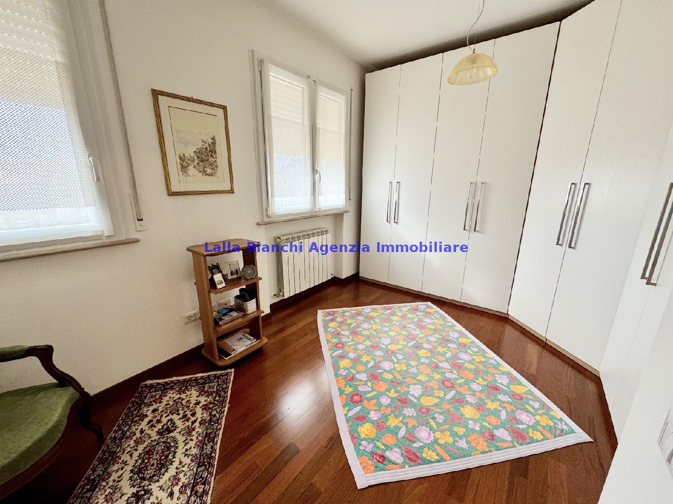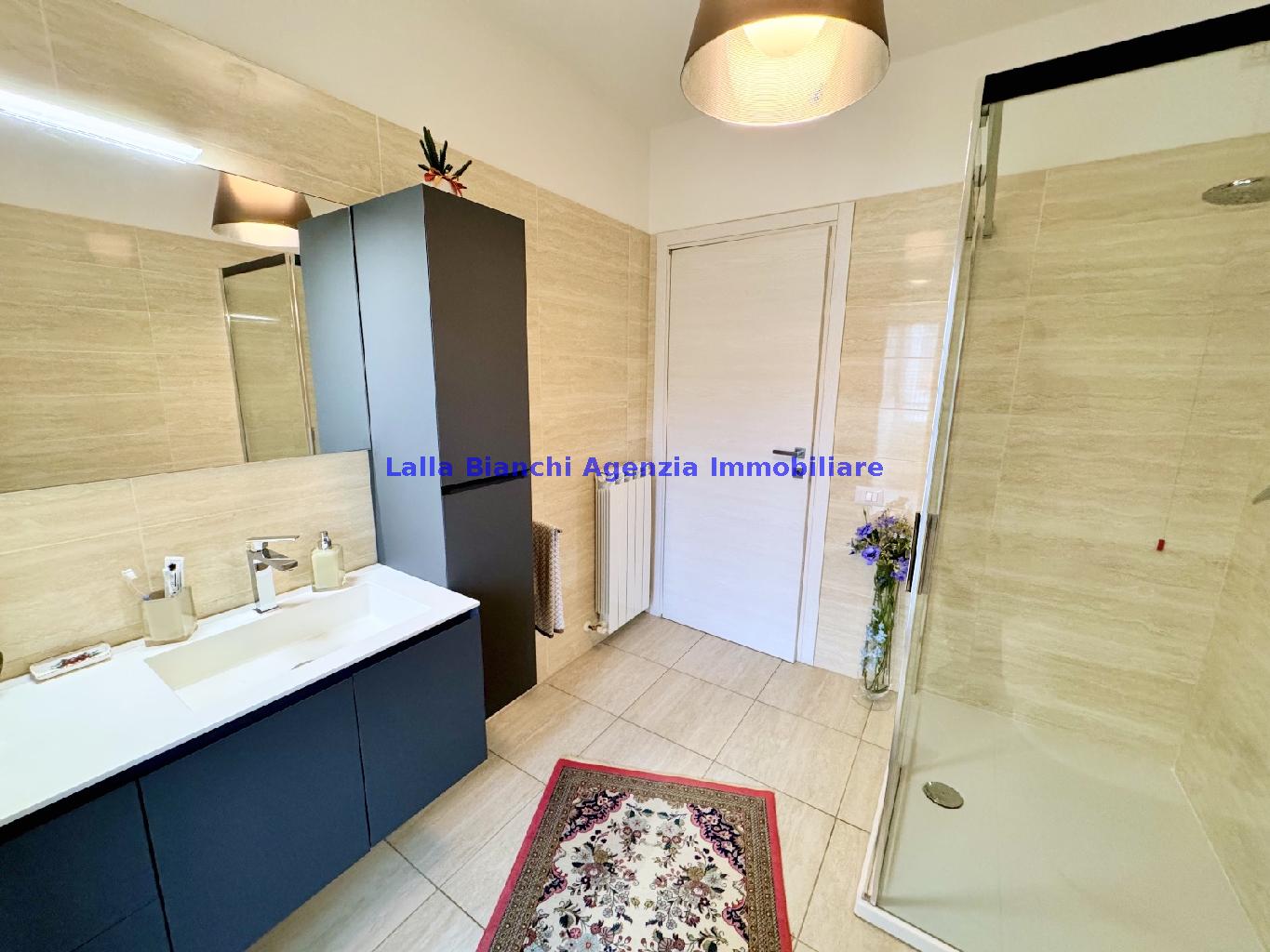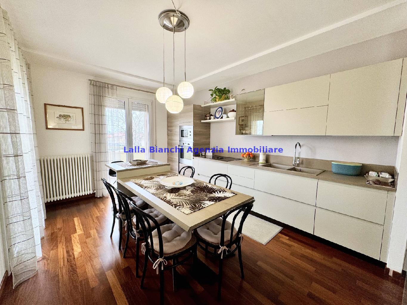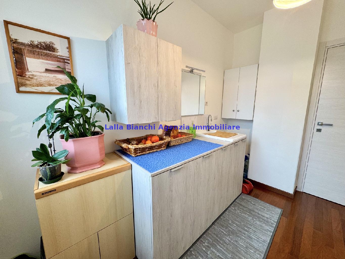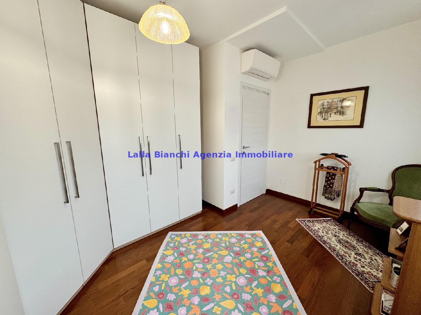 PESARO (PU) / BAIA FLAMINIA: COD. RIF. V. 9199 - L'AGENZIA IMMOBILIARE LALLA BIANCHI propone in VENDITA un elegante Appartamento semi nuovo con due terrazzi al Piano Secondo e un Garage esclusivo al Piano Interrato, all'interno di un recente e signorile piccolo condominio dotato di ascensore. L'abitazione di tipo civile situata al secondo piano di una palazzina residenziale di poche unità, ha una Superficie catastale Totale di 99 m² così suddivisa: - Zona giorno: ingresso diretto su un luminoso soggiorno separato dall'ampia cucina pranzo "abitabile" tramite una raffinata parete a due ante scorrevoli in vetro, da cui si accede ad un ampio terrazzo ideale per pranzi all'aperto. - Zona notte: un disimpegno che accompagna ad un bagno spazioso e finestrato con accesso esclusivo al secondo terrazzo, a due ampie camere da letto e ad una terza stanza attualmente adibita a lavanderia (e comoda dispensa). Completa la proprietà un comodo Garage di Superficie catastale Totale di 22 m² al Piano Interrato, raggiungibile direttamente con l'ascensore a norma disabili (assenza di barriere architettoniche) locato in una zona condominiale ben curata, inclusi ingresso, vano scala e parti comuni. L'appartamento, ultimato e rifinito nel 2019, si presenta in condizioni impeccabili, perfettamente mantenuto e pronto per essere abitato senza necessità di lavori, le finiture interne sono di alto livello, con pavimenti in parquet nella zona giorno e nelle camere, la residenza è dotata di video-citofono, di aria condizionata con tre split interni, impianto d'allarme/antifurto e portone blindato per la massima sicurezza. Le utenze sono autonome (riscaldamento, gas, luce e acqua) e le spese condominiali sono contenute, pari a circa 60 euro al mese. L'immobile rappresenta un'ottima opportunità sia come abitazione principale che come seconda casa o casa vacanze, grazie alla sua posizione strategica: a soli 5 minuti a piedi dalla spiaggia e dal mare di Baia Flaminia e a pochi passi dalla zona Mare e dal Centro Storico della città Pesaro, luoghi facilmente raggiungibili anche in bicicletta tramite la pista ciclabile che passa proprio di fronte alla casa proposta in Vendita.