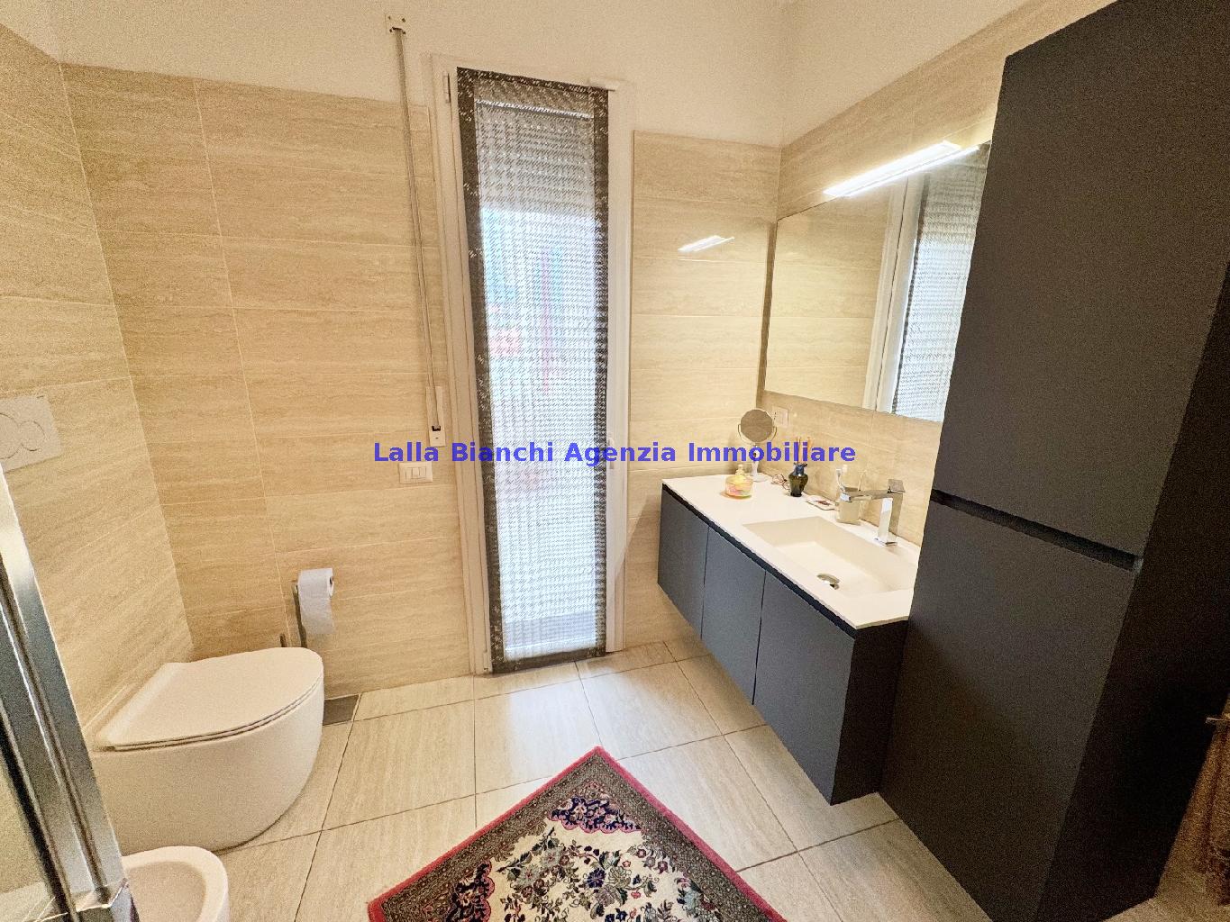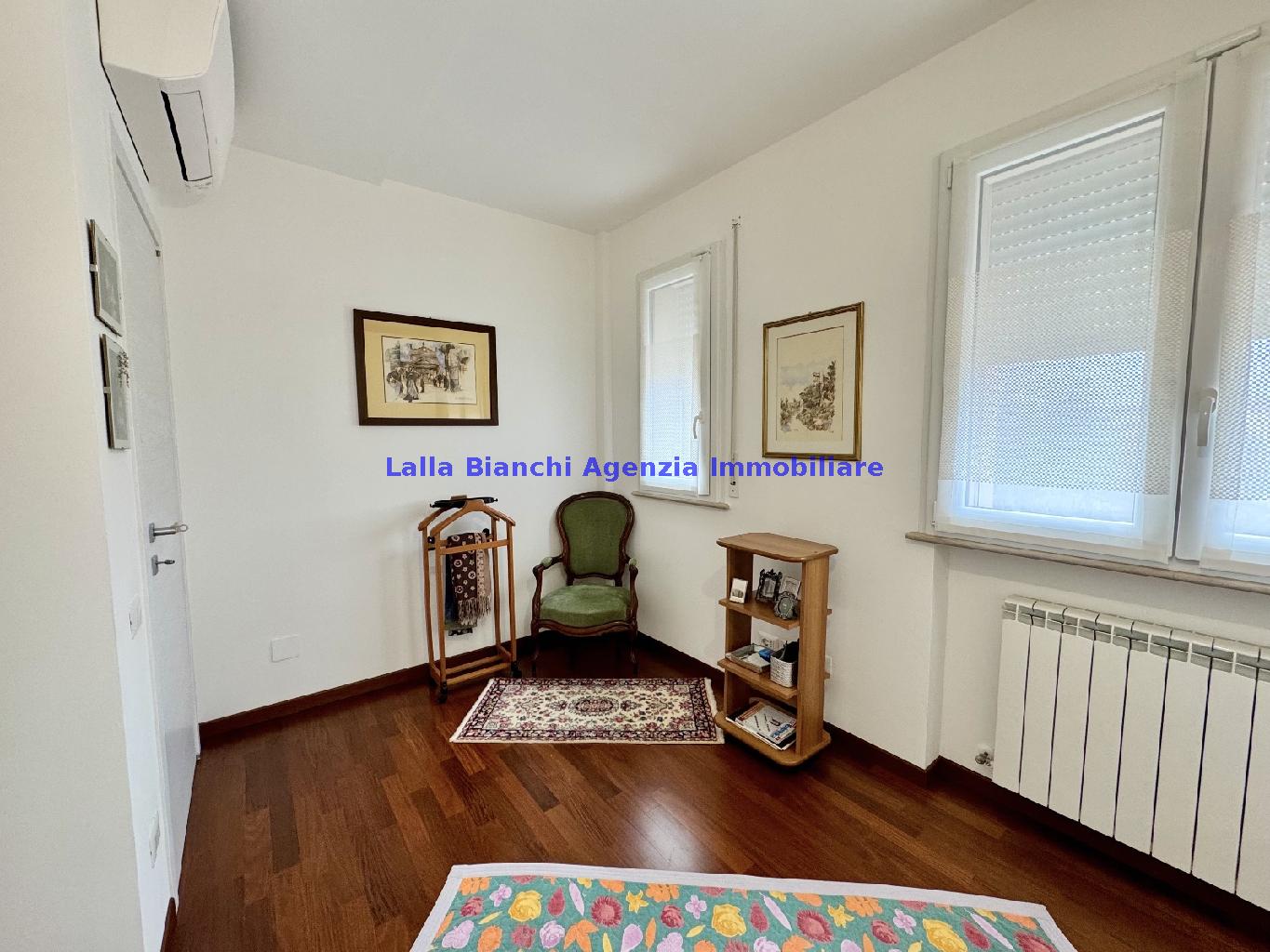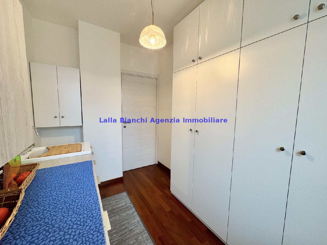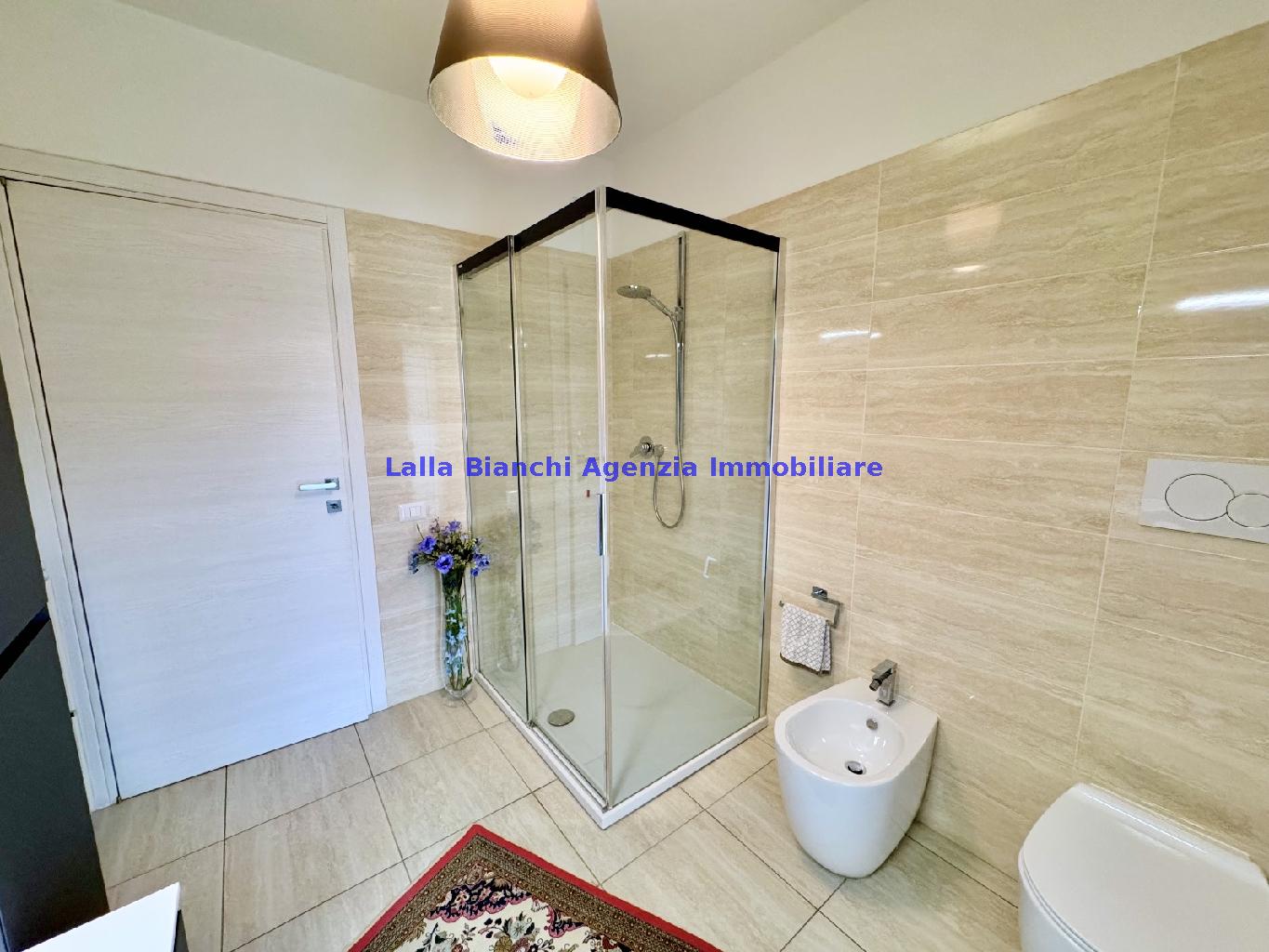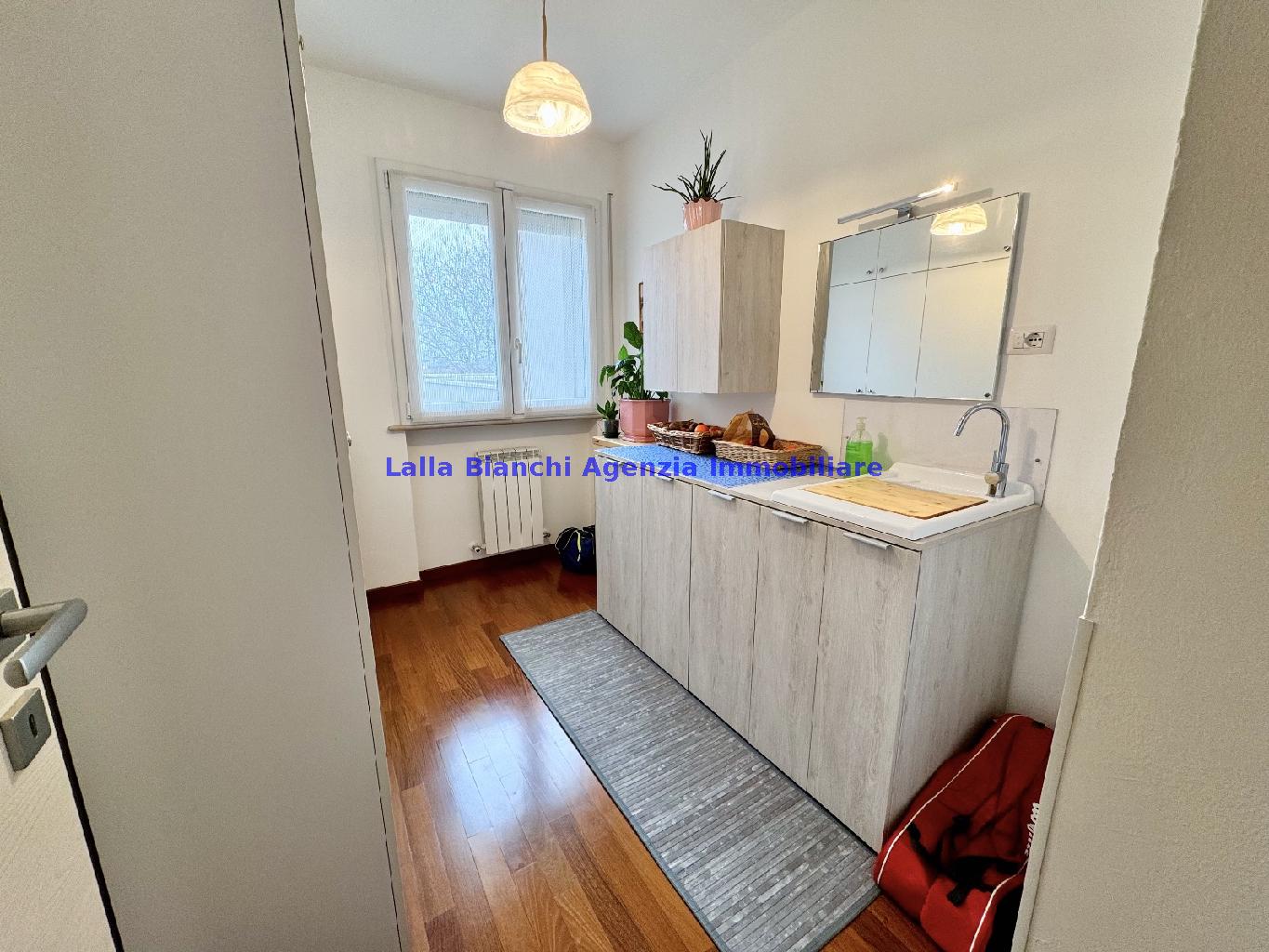 PESARO (PU) / BAIA FLAMINIA: COD. RIF. V. 9199 - L'AGENZIA IMMOBILIARE LALLA BIANCHI propone in VENDITA un elegante Appartamento semi nuovo con due terrazzi al Piano Secondo e un Garage esclusivo al Piano Interrato, all'interno di un recente e signorile piccolo condominio dotato di ascensore. L'abitazione di tipo civile situata al secondo piano di una palazzina residenziale di poche unità, ha una Superficie catastale Totale di 99 m² così suddivisa: - Zona giorno: ingresso diretto su un luminoso soggiorno separato dall'ampia cucina pranzo "abitabile" tramite una raffinata parete a due ante scorrevoli in vetro, da cui si accede ad un ampio terrazzo ideale per pranzi all'aperto. - Zona notte: un disimpegno che accompagna ad un bagno spazioso e finestrato con accesso esclusivo al secondo terrazzo, a due ampie camere da letto e ad una terza stanza attualmente adibita a lavanderia (e comoda dispensa). Completa la proprietà un comodo Garage di Superficie catastale Totale di 22 m² al Piano Interrato, raggiungibile direttamente con l'ascensore a norma disabili (assenza di barriere architettoniche) locato in una zona condominiale ben curata, inclusi ingresso, vano scala e parti comuni. L'appartamento, ultimato e rifinito nel 2019, si presenta in condizioni impeccabili, perfettamente mantenuto e pronto per essere abitato senza necessità di lavori, le finiture interne sono di alto livello, con pavimenti in parquet nella zona giorno e nelle camere, la residenza è dotata di video-citofono, di aria condizionata con tre split interni, impianto d'allarme/antifurto e portone blindato per la massima sicurezza. Le utenze sono autonome (riscaldamento, gas, luce e acqua) e le spese condominiali sono contenute, pari a circa 60 euro al mese. L'immobile rappresenta un'ottima opportunità sia come abitazione principale che come seconda casa o casa vacanze, grazie alla sua posizione strategica: a soli 5 minuti a piedi dalla spiaggia e dal mare di Baia Flaminia e a pochi passi dalla zona Mare e dal Centro Storico della città Pesaro, luoghi facilmente raggiungibili anche in bicicletta tramite la pista ciclabile che passa proprio di fronte alla casa proposta in Vendita.