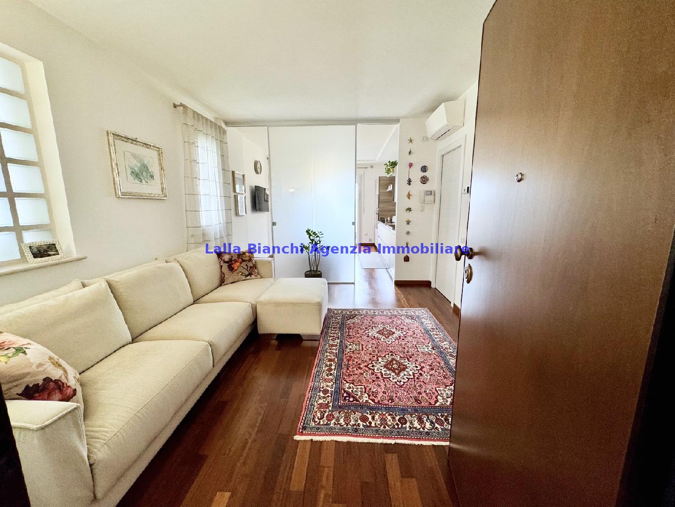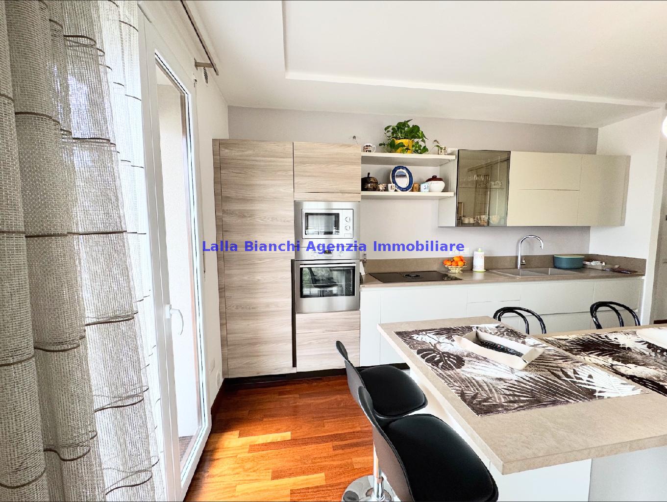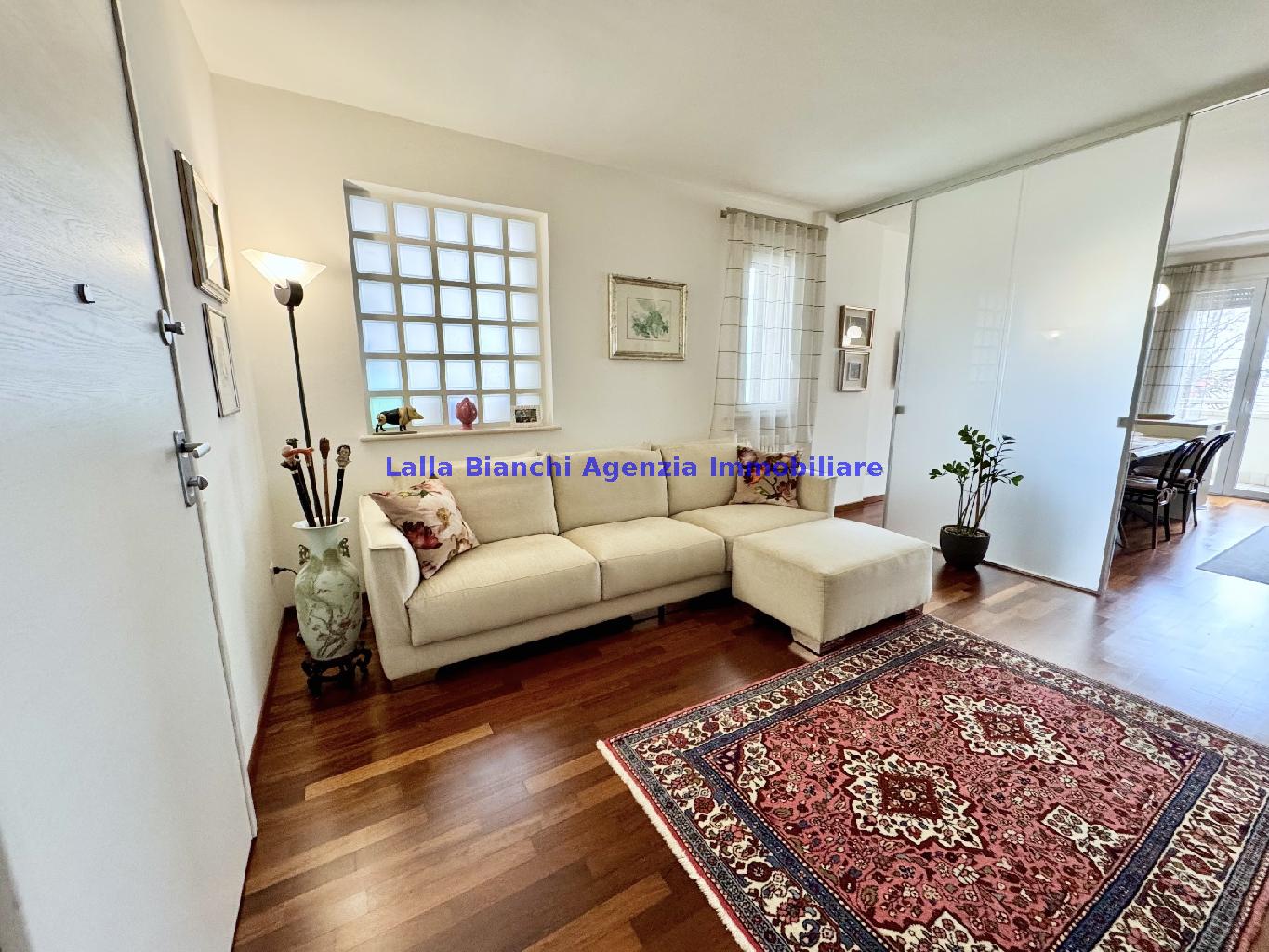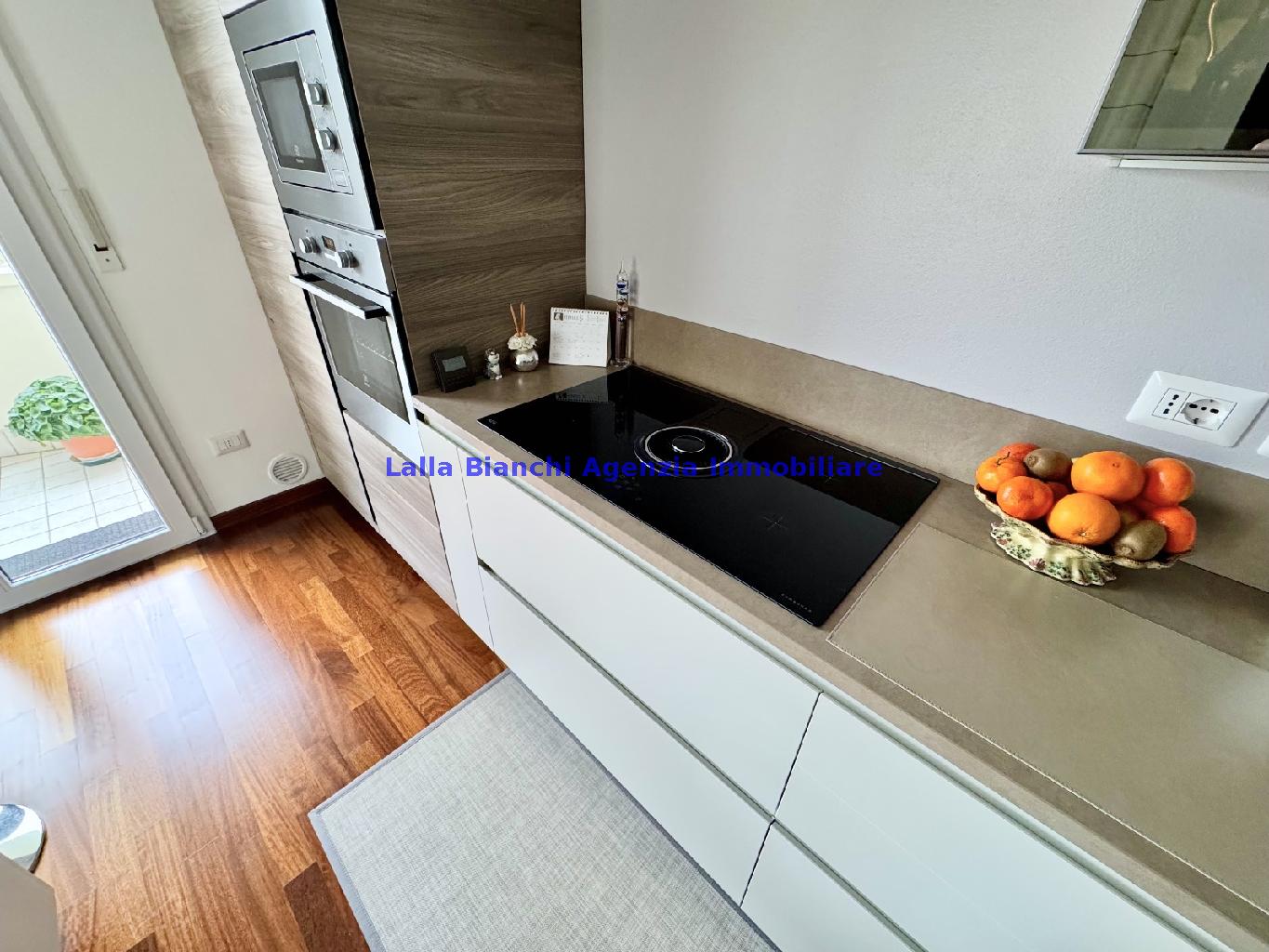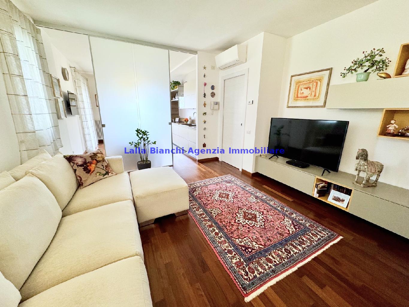 PESARO (PU) / BAIA FLAMINIA: COD. RIF. V. 9199 - L'AGENZIA IMMOBILIARE LALLA BIANCHI propone in VENDITA un elegante Appartamento semi nuovo con due terrazzi al Piano Secondo e un Garage esclusivo al Piano Interrato, all'interno di un recente e signorile piccolo condominio dotato di ascensore. L'abitazione di tipo civile situata al secondo piano di una palazzina residenziale di poche unità, ha una Superficie catastale Totale di 99 m² così suddivisa: - Zona giorno: ingresso diretto su un luminoso soggiorno separato dall'ampia cucina pranzo "abitabile" tramite una raffinata parete a due ante scorrevoli in vetro, da cui si accede ad un ampio terrazzo ideale per pranzi all'aperto. - Zona notte: un disimpegno che accompagna ad un bagno spazioso e finestrato con accesso esclusivo al secondo terrazzo, a due ampie camere da letto e ad una terza stanza attualmente adibita a lavanderia (e comoda dispensa). Completa la proprietà un comodo Garage di Superficie catastale Totale di 22 m² al Piano Interrato, raggiungibile direttamente con l'ascensore a norma disabili (assenza di barriere architettoniche) locato in una zona condominiale ben curata, inclusi ingresso, vano scala e parti comuni. L'appartamento, ultimato e rifinito nel 2019, si presenta in condizioni impeccabili, perfettamente mantenuto e pronto per essere abitato senza necessità di lavori, le finiture interne sono di alto livello, con pavimenti in parquet nella zona giorno e nelle camere, la residenza è dotata di video-citofono, di aria condizionata con tre split interni, impianto d'allarme/antifurto e portone blindato per la massima sicurezza. Le utenze sono autonome (riscaldamento, gas, luce e acqua) e le spese condominiali sono contenute, pari a circa 60 euro al mese. L'immobile rappresenta un'ottima opportunità sia come abitazione principale che come seconda casa o casa vacanze, grazie alla sua posizione strategica: a soli 5 minuti a piedi dalla spiaggia e dal mare di Baia Flaminia e a pochi passi dalla zona Mare e dal Centro Storico della città Pesaro, luoghi facilmente raggiungibili anche in bicicletta tramite la pista ciclabile che passa proprio di fronte alla casa proposta in Vendita.